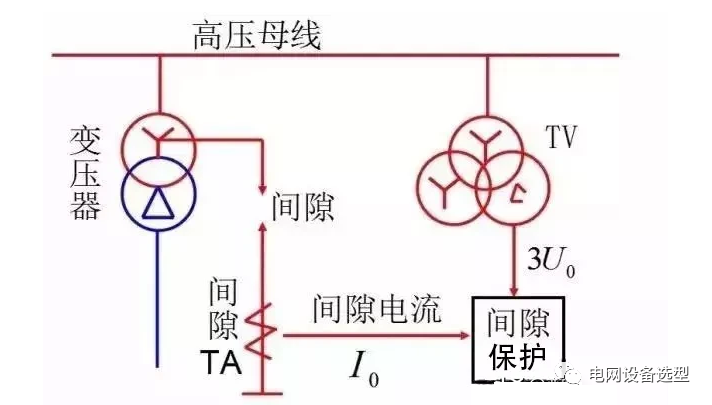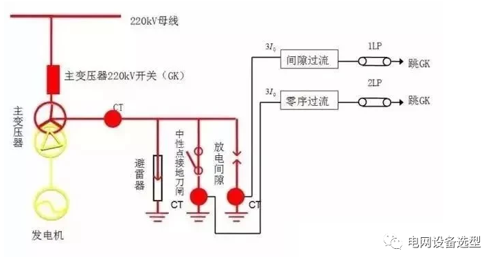 如下圖所示,為了避免由于過電壓從而將變壓器中性點(diǎn)絕緣性能損壞,所以,對于主變壓器中性點(diǎn)當(dāng)下最常采用的是裝設(shè)放電間隙的方法。此外,還在放電間隙回路裝設(shè)獨(dú)立的電流互感器,如此一來就組成了一個(gè)變壓器中性點(diǎn)放電間隙零序過電流保護(hù)。