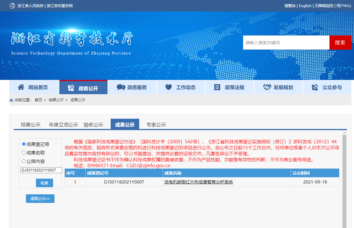 紅外熱成像監(jiān)測系統(tǒng)通過浙江省科學技術(shù)成果鑒定,并于官網(wǎng)公示完成。