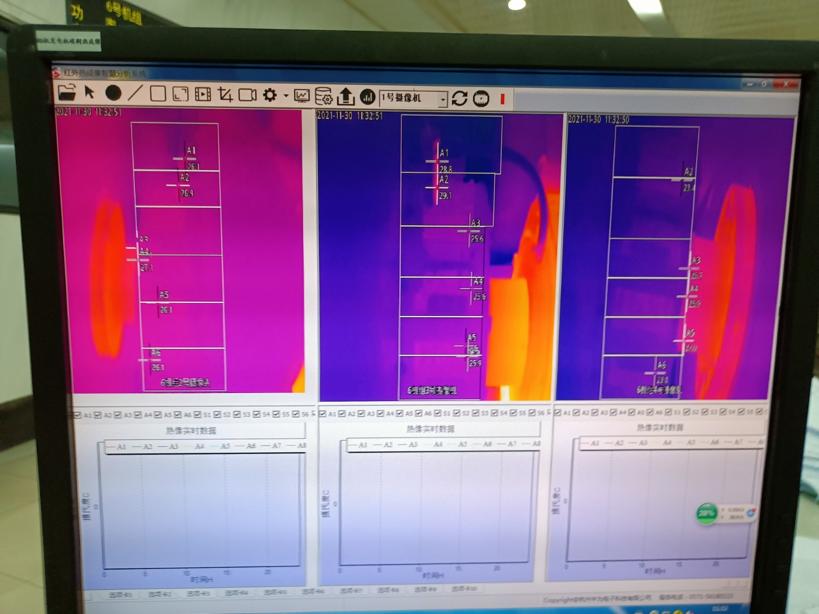 2021年11月,浙江浙能溫州發(fā)電有限公司5、6號(hào)發(fā)電機(jī)合計(jì)完成增補(bǔ)安裝發(fā)電機(jī)碳刷紅外監(jiān)測(cè)熱像儀4套,畫(huà)面清晰穩(wěn)定,溫度監(jiān)控精準(zhǔn);并將現(xiàn)場(chǎng)溫度報(bào)警傳入DCS控制系統(tǒng)中,更好的監(jiān)測(cè)碳刷運(yùn)行情況。