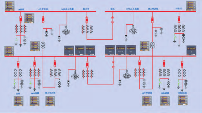 監(jiān)視整個系統(tǒng)運行,顯示實時數(shù)據(jù),通過主接線圖顯示開關(guān)狀態(tài)和負荷量。實時記錄報警信息,顯示負荷、電壓的曲線、裝置運行狀態(tài)等。遙測量越限監(jiān)視、遙信變位報警,事故信號及預告信號等擁有聲、光、色告警。監(jiān)控界面通過遙控、遙調(diào)命令對開關(guān)、斷路器等控制對象進行遠程遙控。具有人工置數(shù)和掛牌功能,方便設備安裝、調(diào)試、維護。