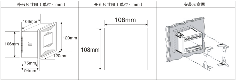 外形尺寸及安裝方式: