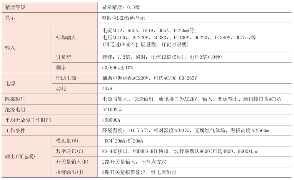 RS485通訊,“MC”代表同時帶“M”模擬量輸出和“C”RS485通訊,“KC”“JC”“JM”“JMC”同理 。