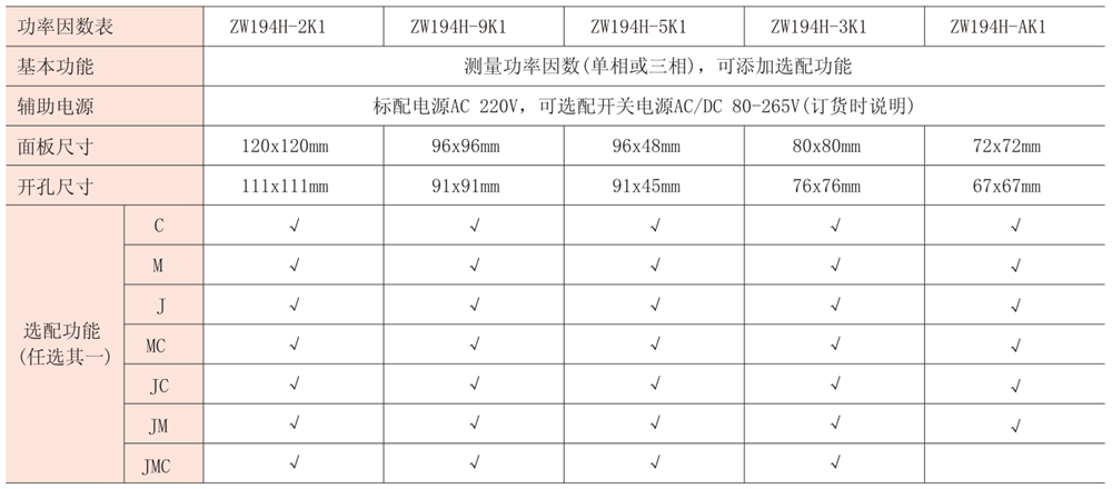 注:“√”代表可選配置,“J”代表報(bào)警輸出,“M”代表模擬量輸出,“K”代表開(kāi)關(guān)量輸入,“C”代表