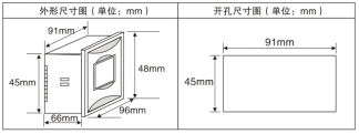 2.開孔尺寸:45mm(高)×91mm(寬)