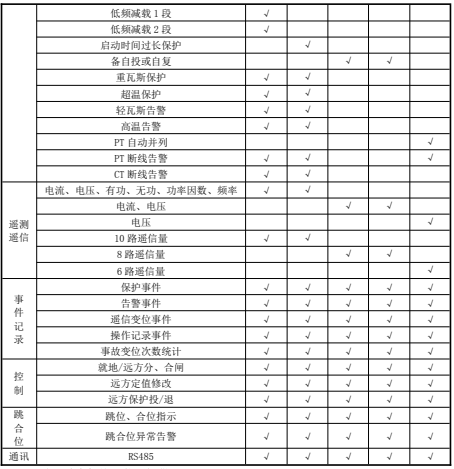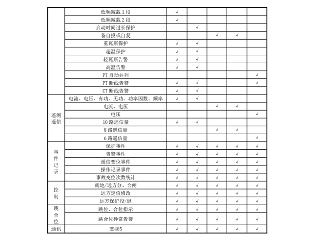 微機(jī)保護(hù)裝置功能配置表: