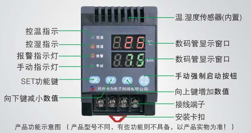 本產(chǎn)品具有測(cè)量誤差小、控制精度高、顯示清晰明了、大方得體的優(yōu)點(diǎn),可廣泛應(yīng)用于各種需要高精度控溫及控濕場(chǎng)合。采用傳感器內(nèi)置,不需要外接傳感器,對(duì)同一環(huán)境溫度、濕度進(jìn)行實(shí)時(shí)監(jiān)控,數(shù)碼管顯示設(shè)定值和測(cè)量值。根據(jù)預(yù)設(shè)控制值,自動(dòng)或手動(dòng)強(qiáng)制啟動(dòng)控制負(fù)載為調(diào)節(jié)環(huán)境的溫度和濕度。