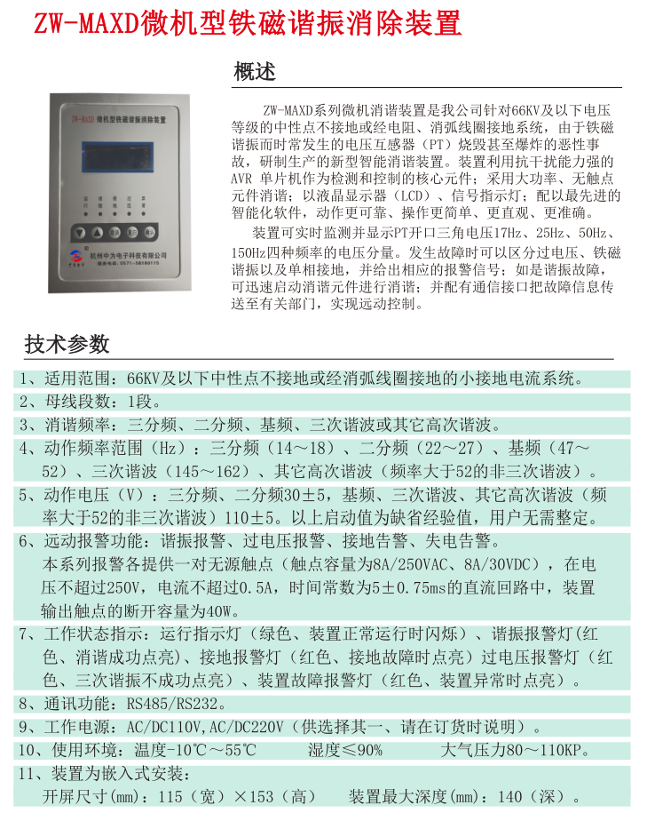 ZW-MAXD微機(jī)型鐵磁諧振消除裝置