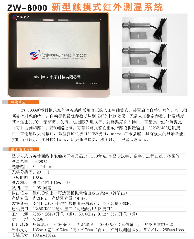 ZW-8000新型觸摸式紅外測(cè)溫系統(tǒng)