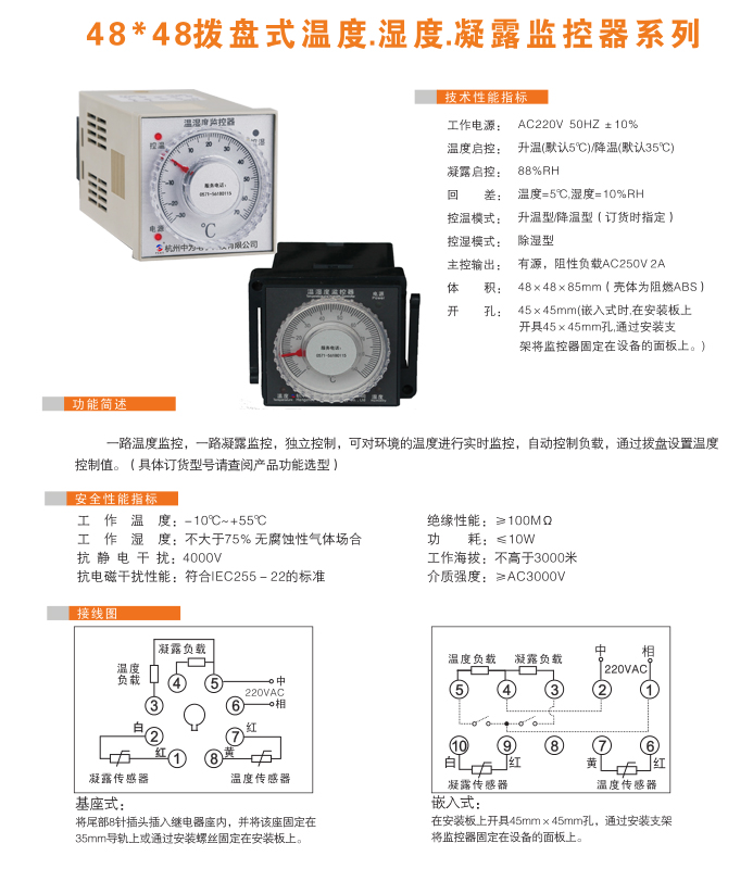 4.除凝露型:當(dāng)測量濕度值大于88%RH時(shí),啟動(dòng)除凝露負(fù)載,當(dāng)測量濕度小